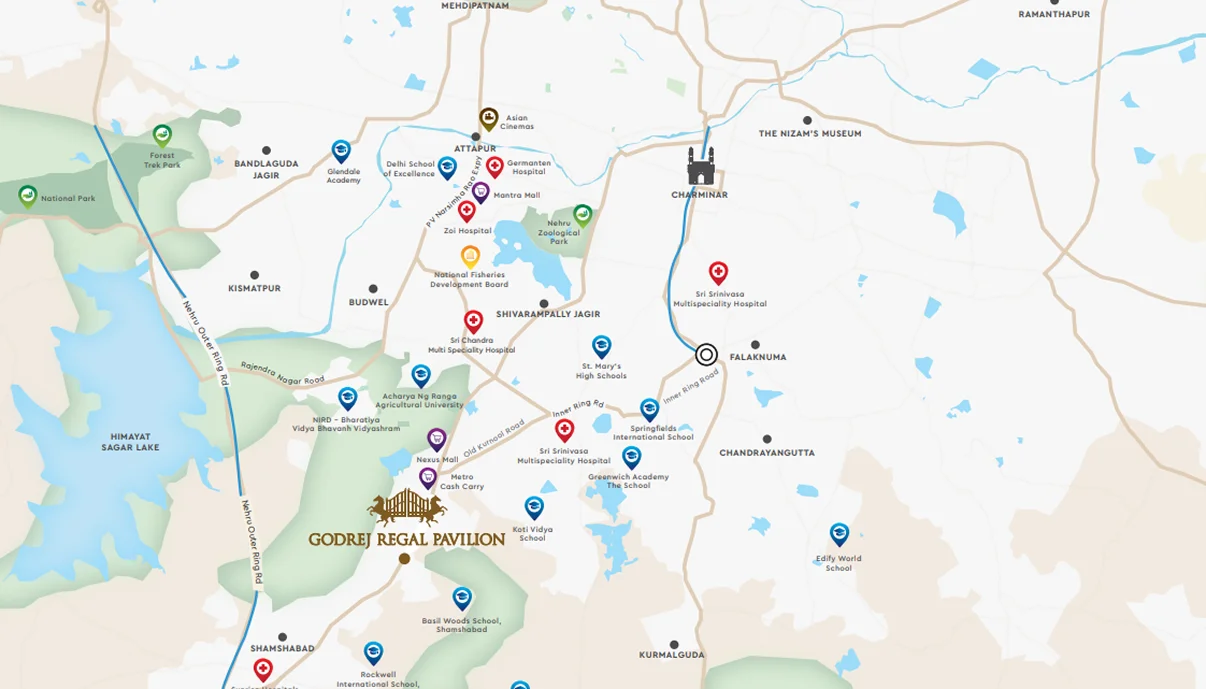 Godrej Regal Pavilion in Rajendra Nagar, Hyderabad is a prestigious residential project, one of the most trusted names in the real estate industry. Located in the prime area of Rajendra Nagar, this project offers a perfect balance between modern living and serene surroundings. Located in the heart of the city, this new development offers an outstanding living experience. With meticulous attention to detail and impeccable craftsmanship, these apartments redefine luxury living. The Godrej Regal Pavilion in Hyderabad area has everything you need, whether you're a first-time buyer or an investor looking for lucrative opportunities. Furthermore, Godrej Regal Pavilion in Hyderabad enjoys excellent connectivity to major IT hubs like HITEC City and Gachibowli as well as educational institutions, hospitals, shopping malls, and entertainment areas.
